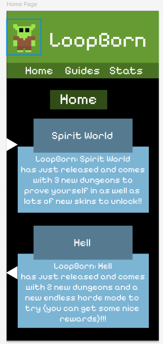 I started by choosing the resolution I was going to go for. This was an easy choice as I just went with my phones resolution, which is 375 by 812 pixels. After deciding this, I moved on to start making the home page. I created some news and laid out where all of the buttons would go. Then I created the guides page and a single guide the player will be able to click on. I then learned how to use buttons, which turned out to be quite easy, so I made 2 button pre-sets I can use throughout the project.