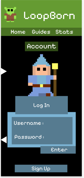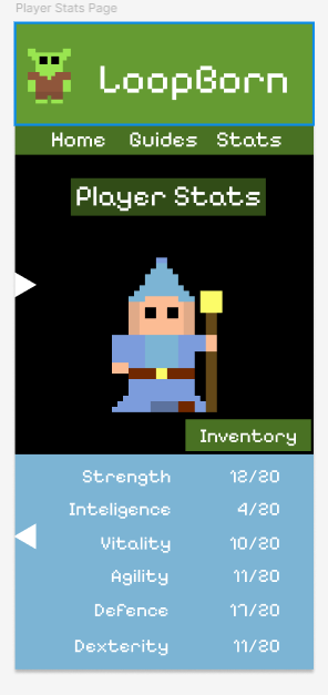 Some user flow considerations I made include when making the accounts page I decided to make the area to type you username and password low down on the screen to make it easy to click so the flow is good for the user. Another consideration was with the inventory button on the player stats page, which I placed in the middle of the screen to make it easy to access.
